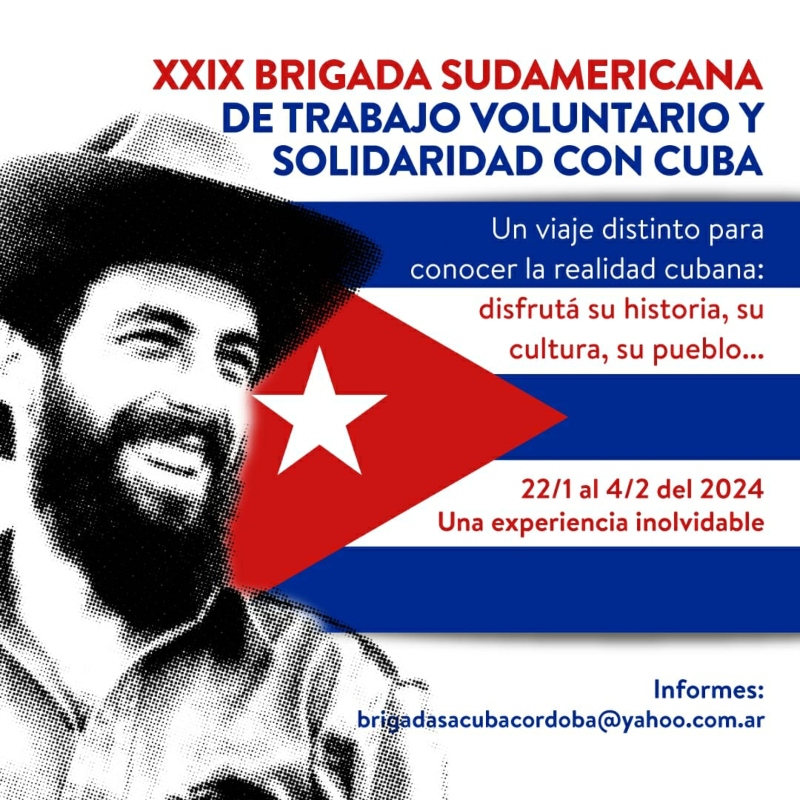 Las inscripciones estarán abiertas para los interesados hasta el viernes 29 de diciembre de 2023 y se realizarán por correo electrónico a la coordinadora de brigadas del MAS CUBA en Argentina: