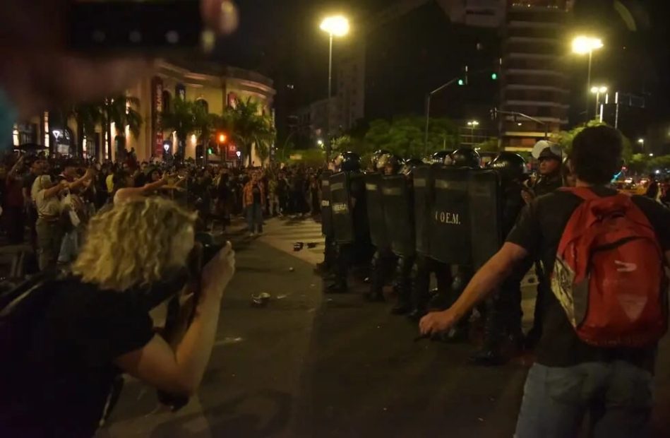 En determinado momento de la noche, aproximadamente a las 22, la presencia policial incrementó en la zona debido a la gran concurrencia de manifestantes.