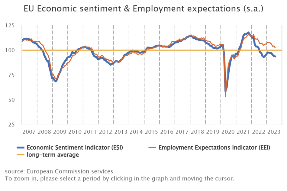 Los expertos indican que la zona euro evitó por poco una recesión durante el invierno. Asimismo, la Unión Europea recortó sus previsiones de crecimiento para este año. Así, independientemente de que la inflación se esté desacelerando, la misma aún no ha llegado al objetivo del 2 % fijado por el Banco Central Europeo.