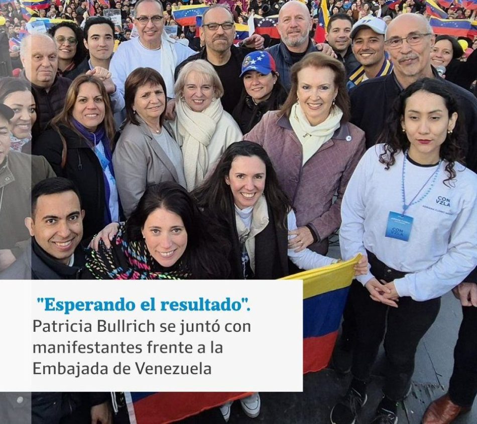 La ministra Patricia Bullrich y un grupo de libertarios ultraderechistas, se autoconvocaron frente a la embajada venezolana en Buenos Aires como una forma de amenaza pasiva ante el probable triunfo de Nicolás Maduro.