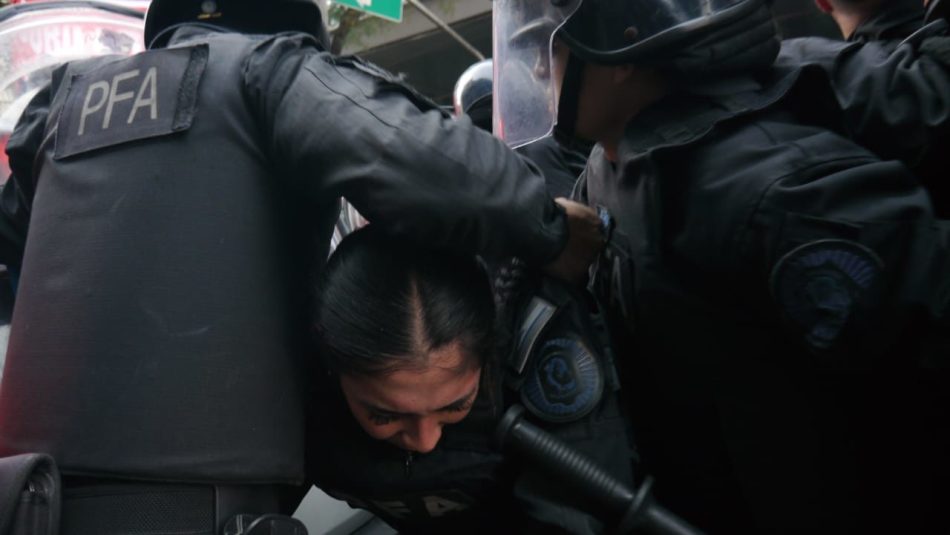 En un momento llegó un pelotón de la Policía Federal que cargó contra hombres y mujeres ancianos, lanzándoles gas pimienta a los ojos y golpeándolos, mientras los manifestantes los maldecían al grito de “asesinos, asesinos”. Luego, se enfrentaron con el cordón policial y mirándolos a cada uno de los y las policías, les decían “ustedes no tienen madre ni abuela, son asesinos”, mientras las y los uniformados bajaban la vista.