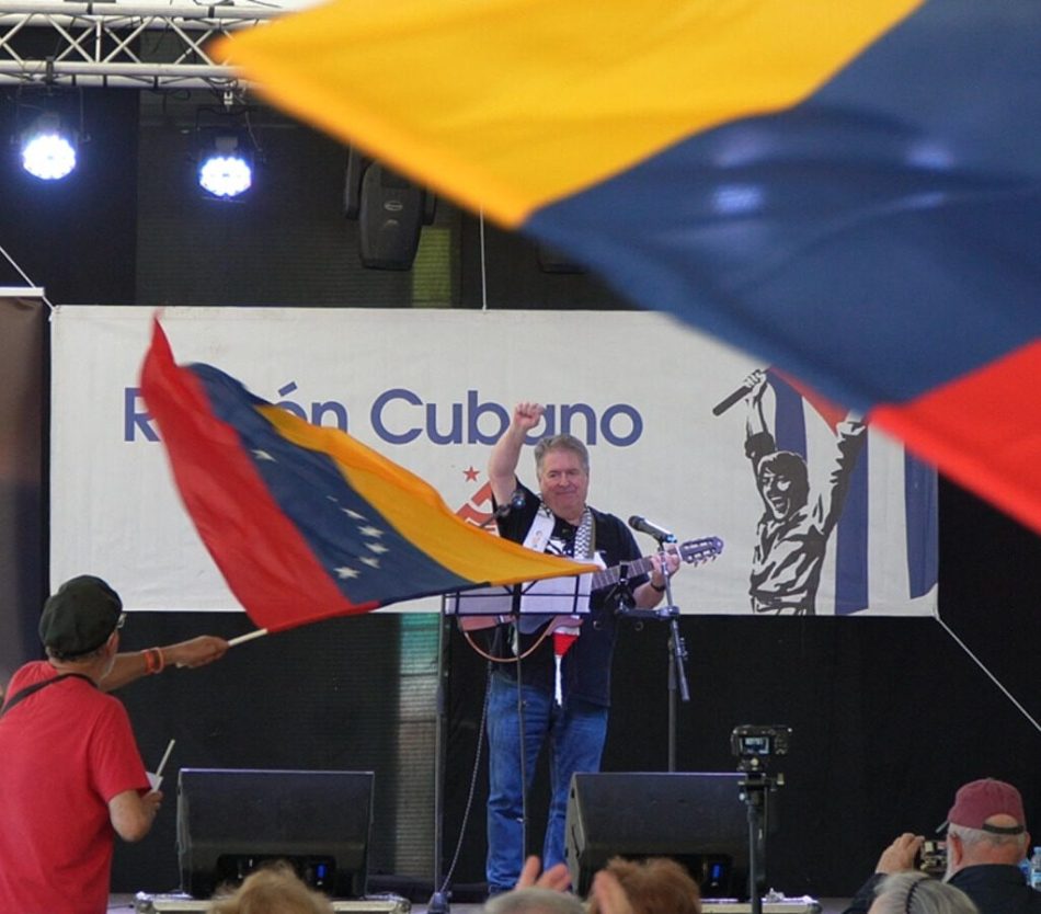 Durante el evento, los participantes desplegaron una pancarta con el mensaje «¡Fuera la injerencia de Venezuela!» y corearon consignas de solidaridad, reafirmando su compromiso con la soberanía venezolana.