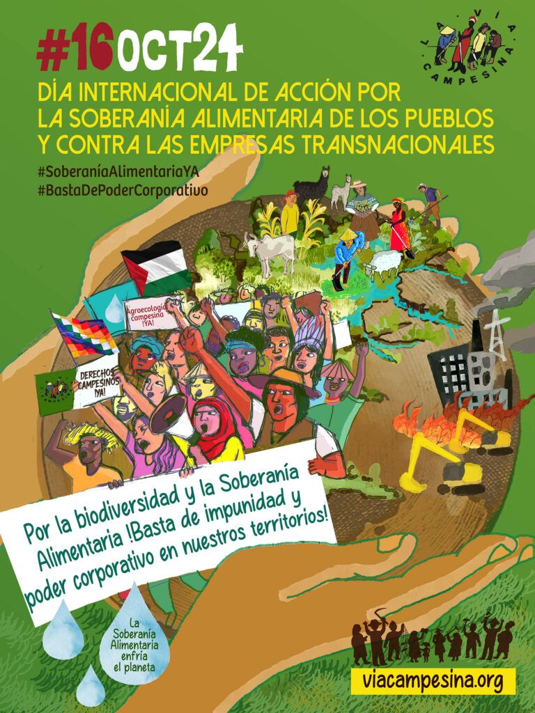 La convocatoria, difundida por La Vía Campesina, el mayor movimiento rural a nivel planetario, presenta el contexto de esta convocatoria a la protesta ciudadana. Según La Vía Campesina, que aglutina a unos 200 millones de campesinos de 180 organizaciones locales y nacionales en 81 países, “diariamente el mundo despierta con noticias sobre cómo la degradación del medio ambiente se está agravando mientras las élites de poder corporativo no dejan de enriquecerse gracias a las crisis que ellas mismas han generado”. Para La Vía Campesina, “la vida está bajo amenaza constante y muchas políticas públicas están siendo despojadas de derechos fundamentales como la salud, la vivienda y la alimentación, así como de derechos colectivos y campesinos, [lo que] ha llevado a un deterioro de la justicia social y la monopolización de los bienes comunes” (https://viacampesina.org/fr/16oct24-journee-internationale-daction-pour-la-souverainete-alimentaire-des-peuples-et-contre-les-multinationales/).