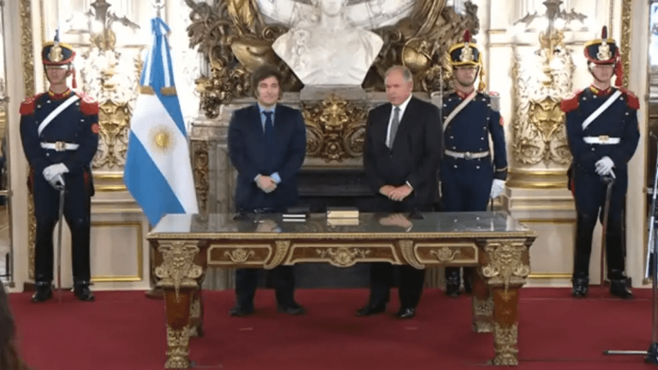 Gerardo Werthein, quien hasta ahora ocupaba el rol de embajador argentino en los Estados Unidos, asumió este lunes como nuevo Canciller en reemplazo de Diana Mondino, quien fue apartada del puesto. El presidente Javier Milei le tomó juramento a Werthein a las 18.30 en un breve acto en el Salón Blanco de la Casa Rosada.