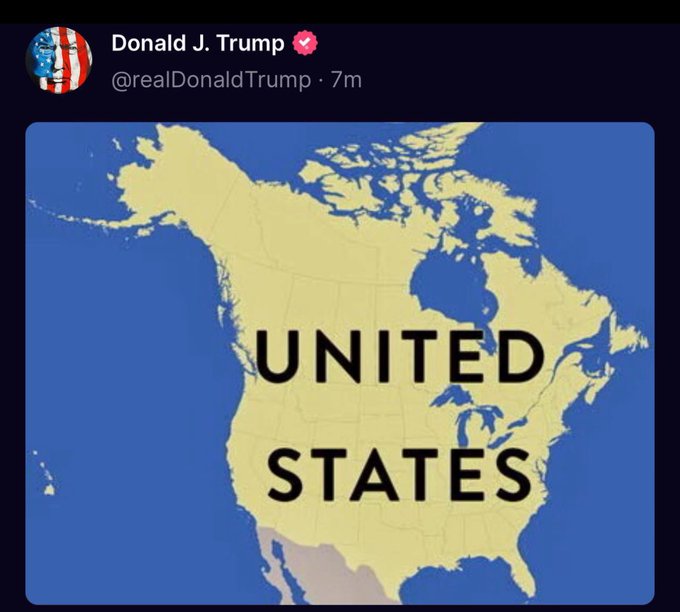 Al mismo tiempo, difundió un mapa de los dos países pintados con la bandera de EE.UU. junto al mensaje «¡Oh, Canadá!», en alusión al título del himno nacional canadiense, ‘O Canada’.