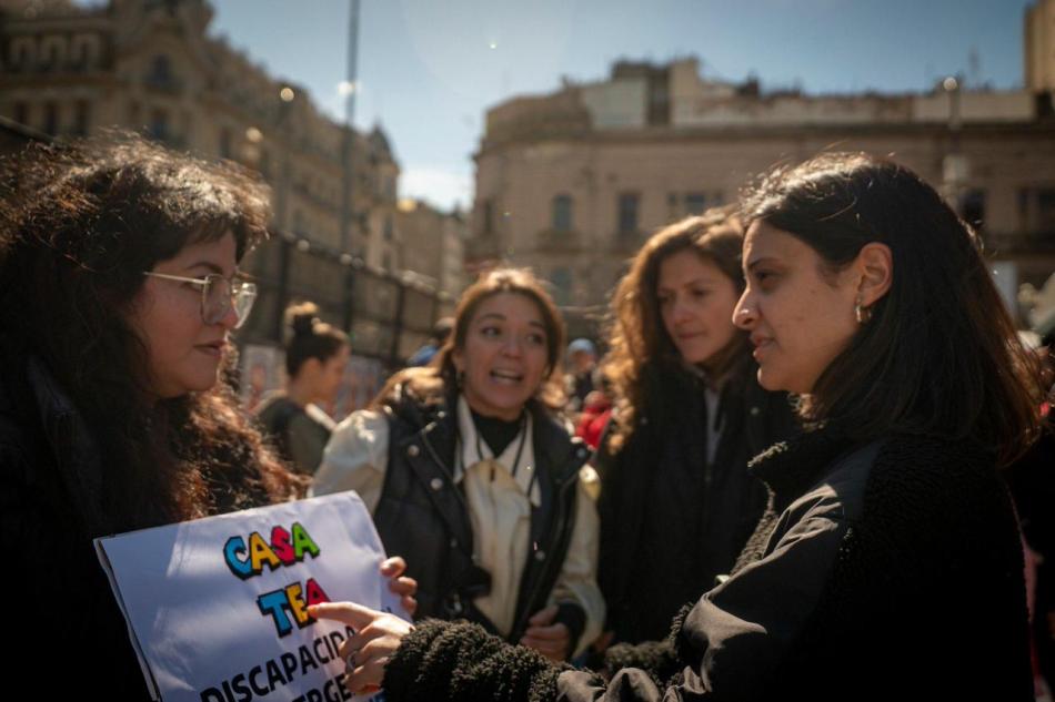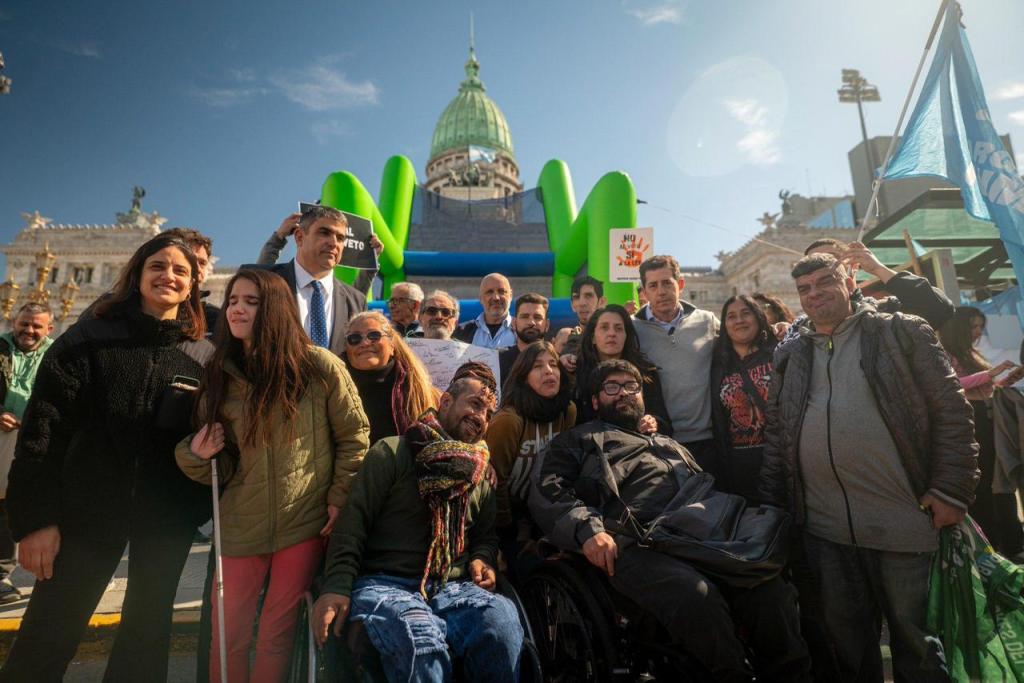La militancia acompañó la movilización de los colectivos de personas con discapacidad que exigió el rechazo del veto frente al Congreso.