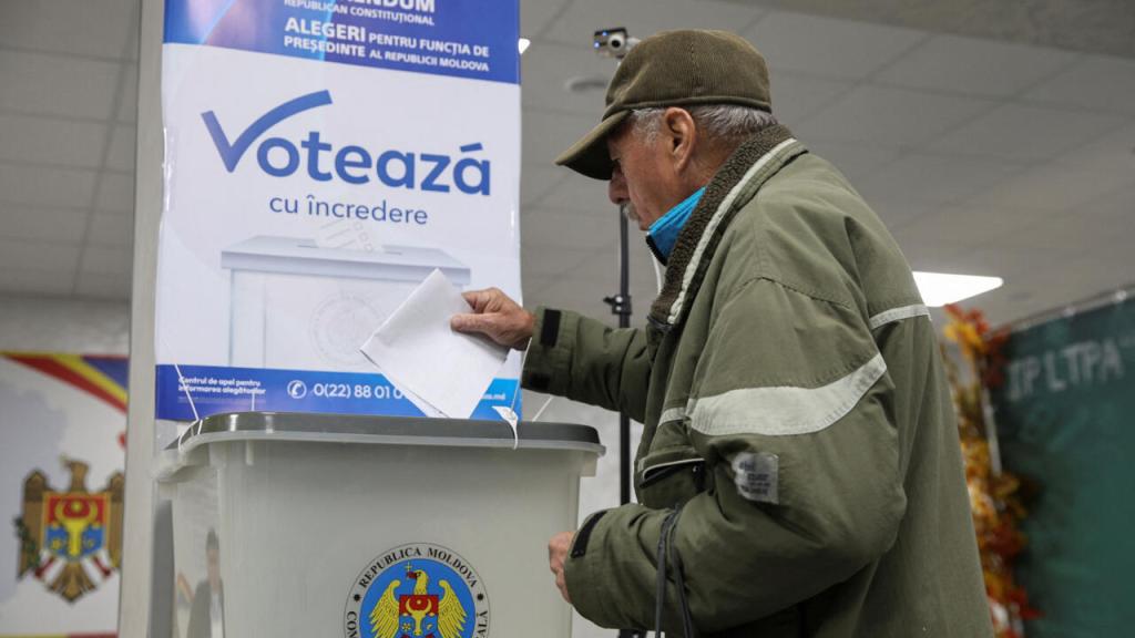 Un votante emite su voto en un centro de votación en 2024 cuando el país celebraba elecciones presidenciales junto a un referéndum sobre la adhesión a la Unión Europea. REUTERS – Vladislav Culiomza
