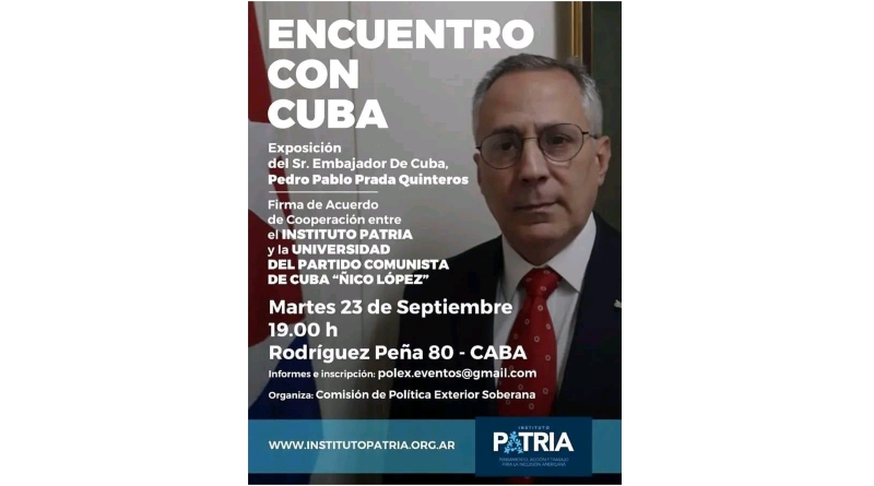 El Instituto Patria de Argentina y la Universidad del Partido Comunista de Cuba “Ñico López” sellaron hoy un convenio de cooperación académica.