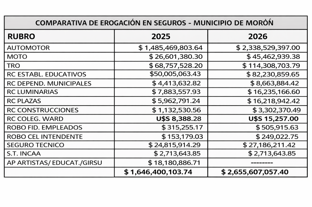 La póliza alcanzó los U$S 15.257 anuales, pagaderos en moneda extranjera, lo que representa un salto significativo respecto de períodos anteriores, donde el mismo concepto ronda valores sensiblemente menores. La documentación de pagos evidencia que el Municipio sostuvo esta erogación dentro de un esquema más amplio de seguros que, en su conjunto, implica cifras millonarias mensuales .