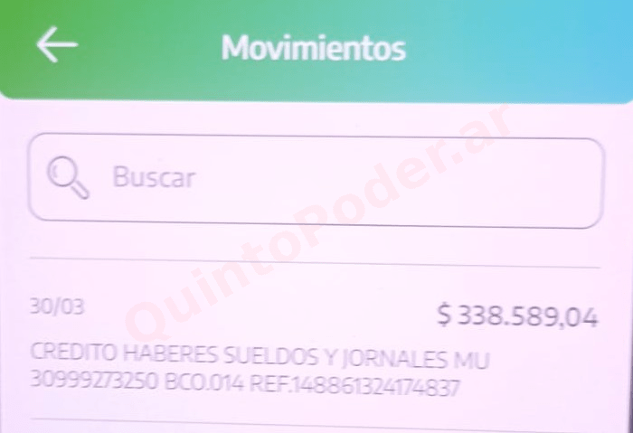 Quinto Poder pudo acceder a los detalles que decantaron en esta renuncia: Es así que, según el material al que tuvo acceso Quinto Poder, Gayoso advirtió un recorte abrupto al percibir su salario de marzo: un depósito de apenas $338.589 en su Cuenta DNI.