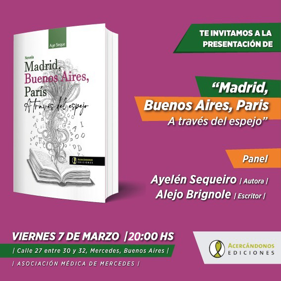 Acercándonos ediciones invita a la presentación del libro Madrid, Buenos Aires, París, a través del espejo Panel: Ayelén Sequeiro (autora),Seguir leyendo