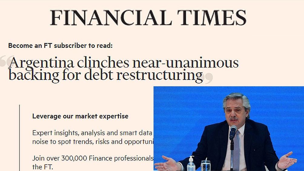 «La Argentina reestructuró con éxito casi toda su deuda de 65.000 M de dólares con acreedores privados, lo que constituye un gran logro que le permitirá poner fin a su noveno incumplimiento de la deuda soberana», señaló el diario británico.