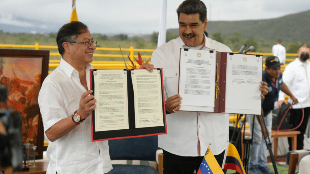 Ambos mandatarios se encontraron este jueves en el puente internacional ‘Tienditas’, importante paso fronterizo que comunica a los dos países.Seguir leyendo