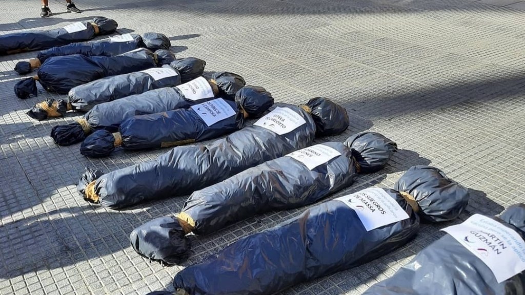 Con macabras representaciones y disturbios se llevó a cabo la marcha convocada por Juntos por el Cambio en algunas plazas del país.
