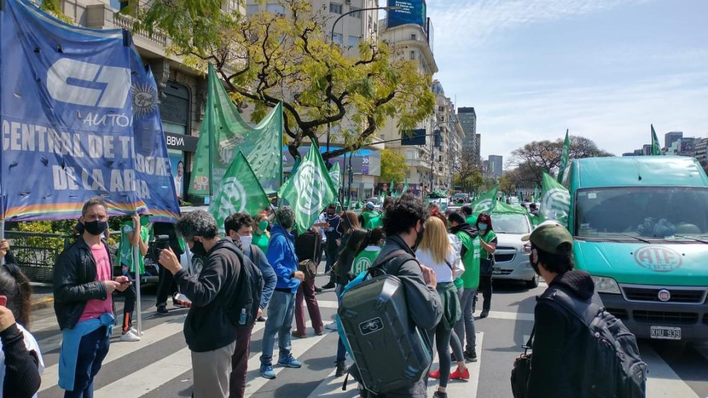 El acto que congregó a miles de trabajadores frente al Ministerio de la Producción comenzó con el Himno Nacional ySeguir leyendo